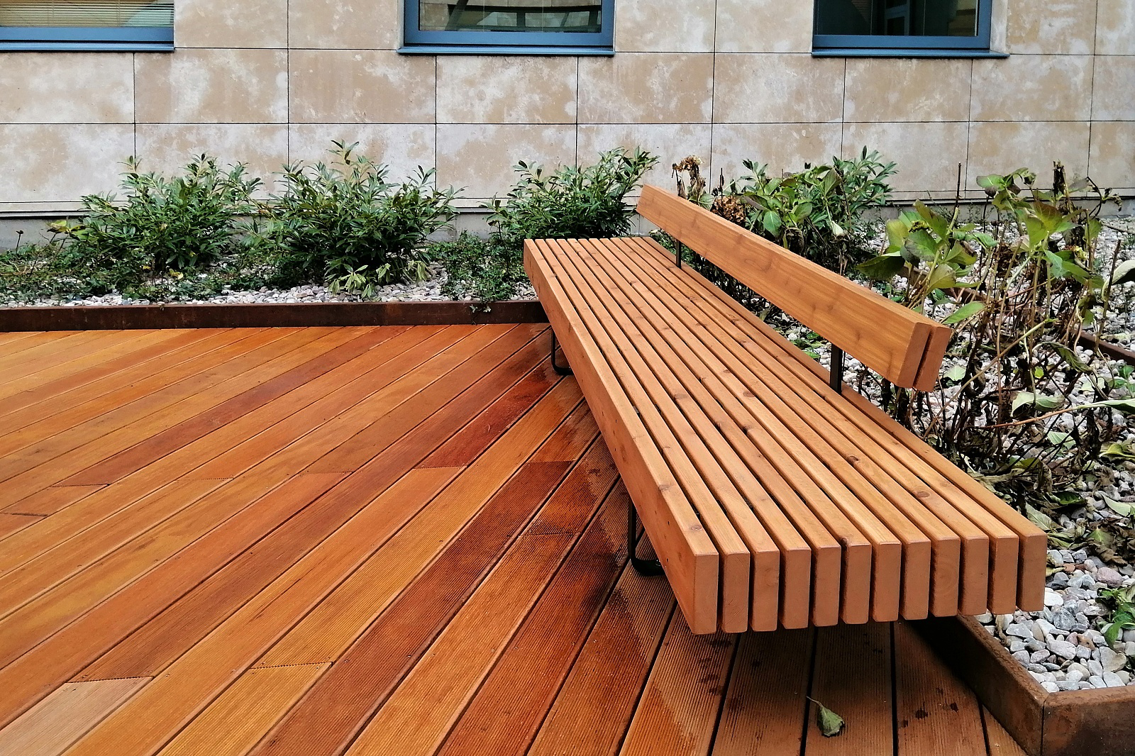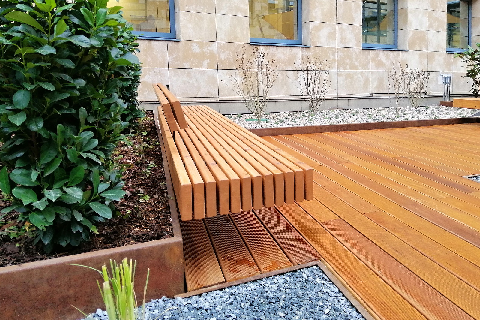 Pražský komplex International Business Center (IBC) se nachází v atraktivní lokalitě na rozhraní Prahy 1 a Prahy 8 – Karlína. Projekt je tvořen třemi budovami, které obklopují poklidné atrium plné svěží zeleně. V rámci celkové obnovy atria došlo nejen k výměně zeleně, ale i k osazení atypických laviček BORDO z cedrového dřeva a s integrovaným LED osvětlením.