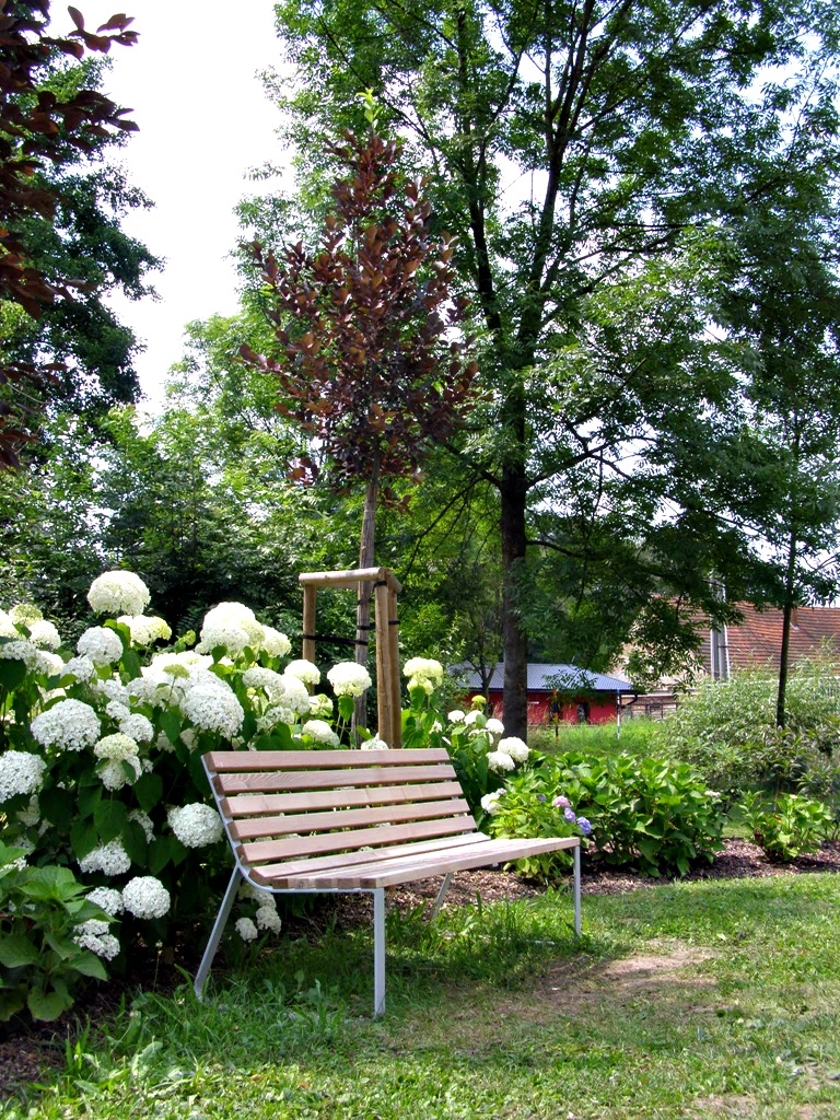 Instalovaný mobiliář: parkové lavičky INOA, odpadkové koše INOA, stojan na kola MEA