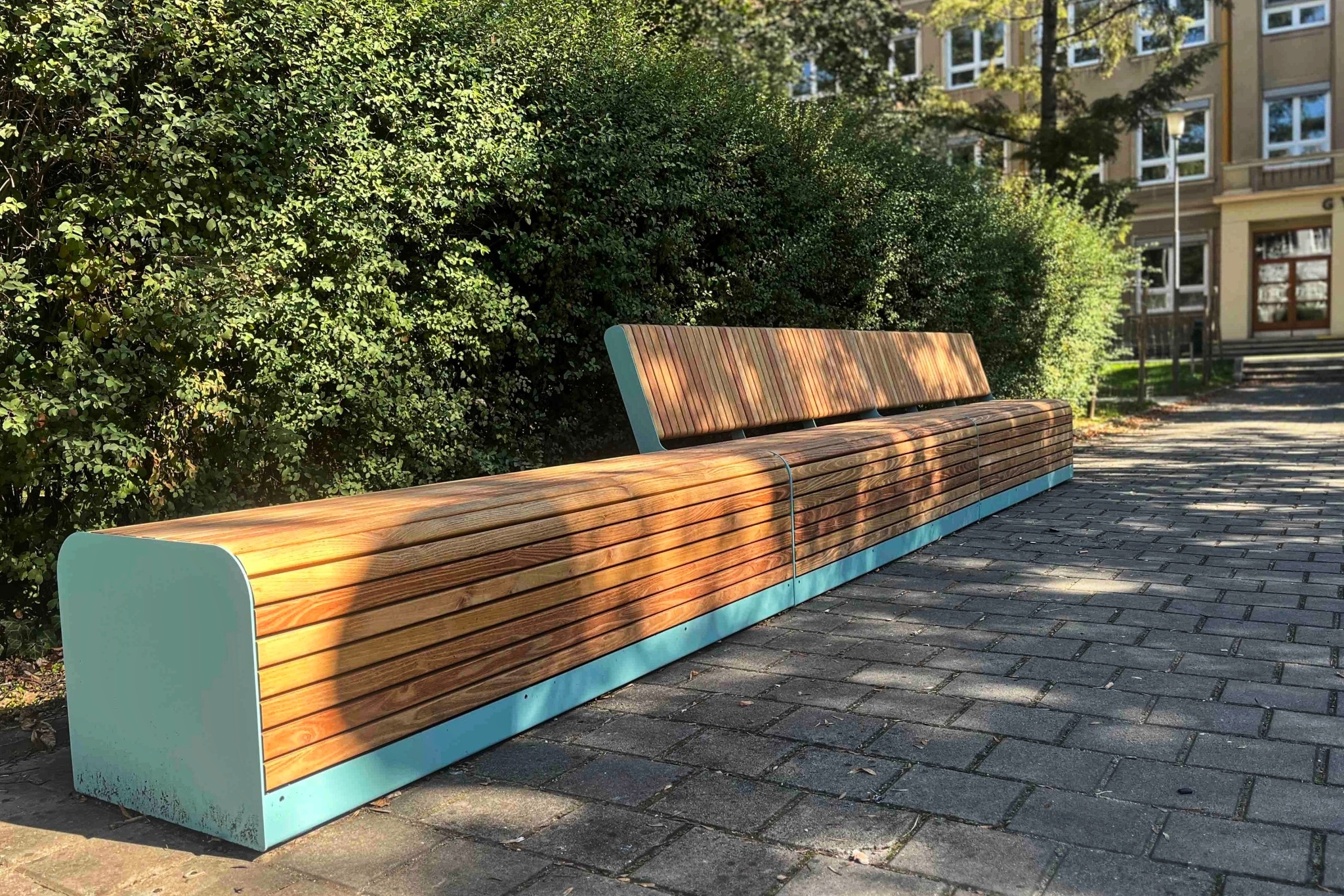 Zinkovaná ocelová nosná konstrukce je opatřena práškovým vypalovacím lakem. Sedák a opěrák tvoří latě z masivního dřeva připevněné nerezovými vruty k nosné konstrukci.