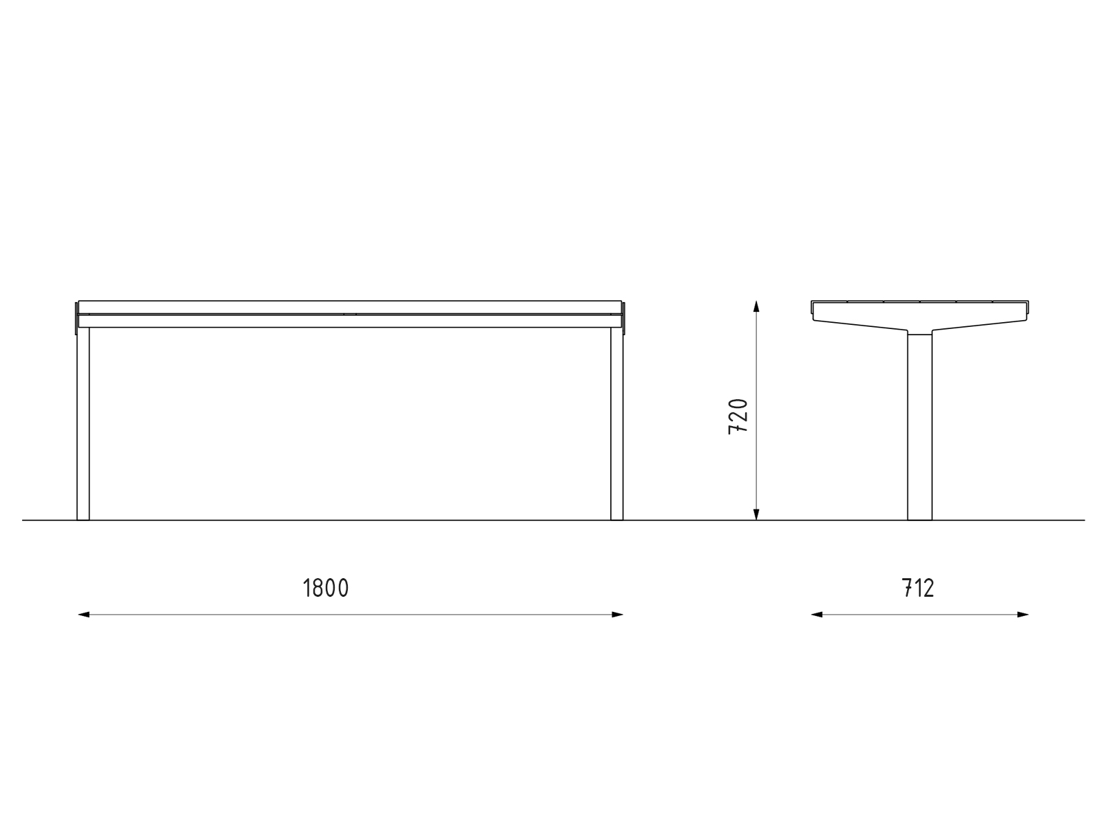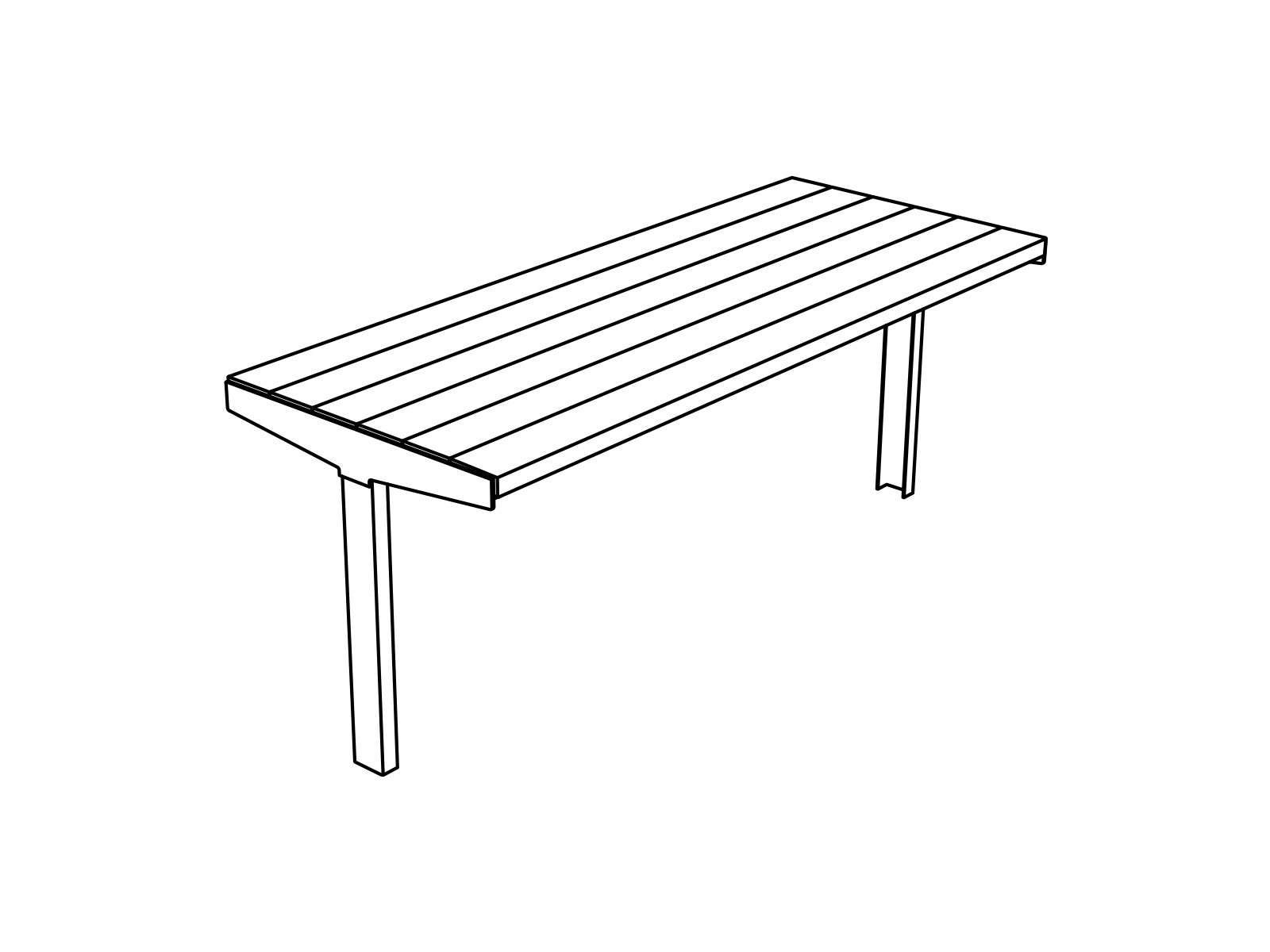 Ocelová nosná konstrukce je zinkovaná a opatřená práškovým vypalovacím lakem. Plochu stolu tvoří latě či desky z masivního dřeva přichycené nerezovými vruty k nosné konstrukci. Ve spodní části nohou jsou navařeny platle s otvory pro kotvení k podkladu.