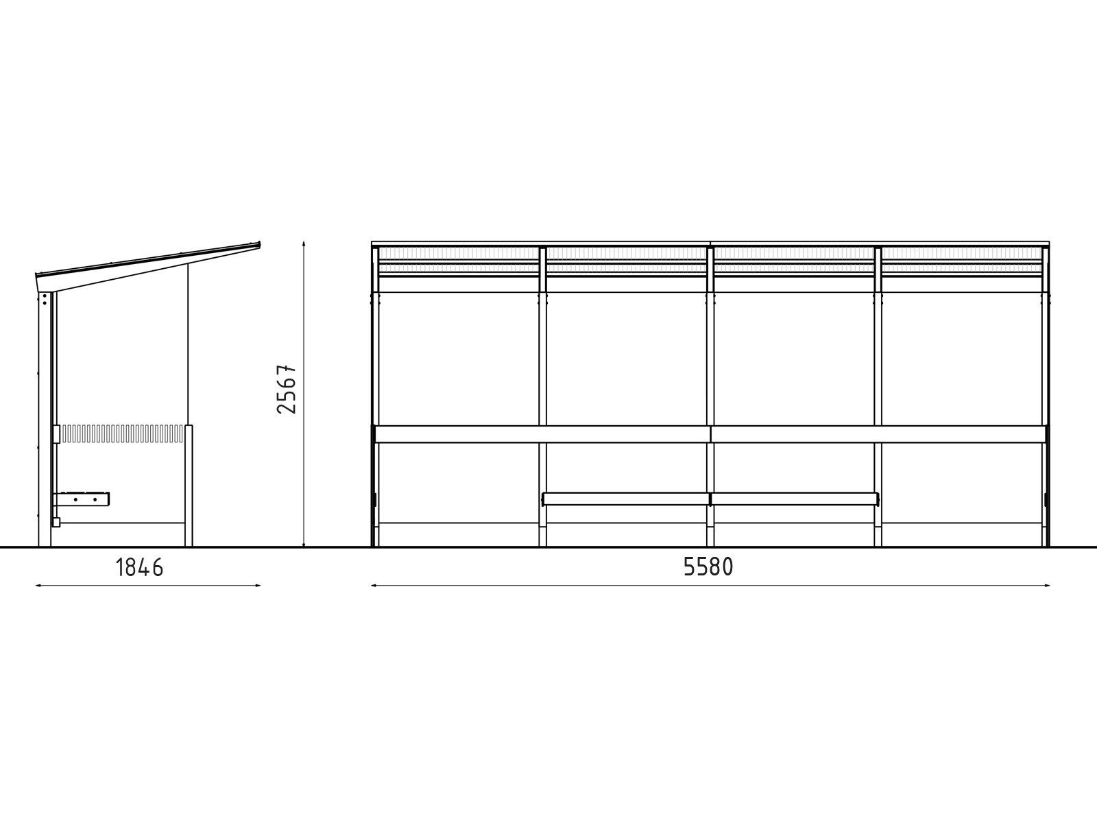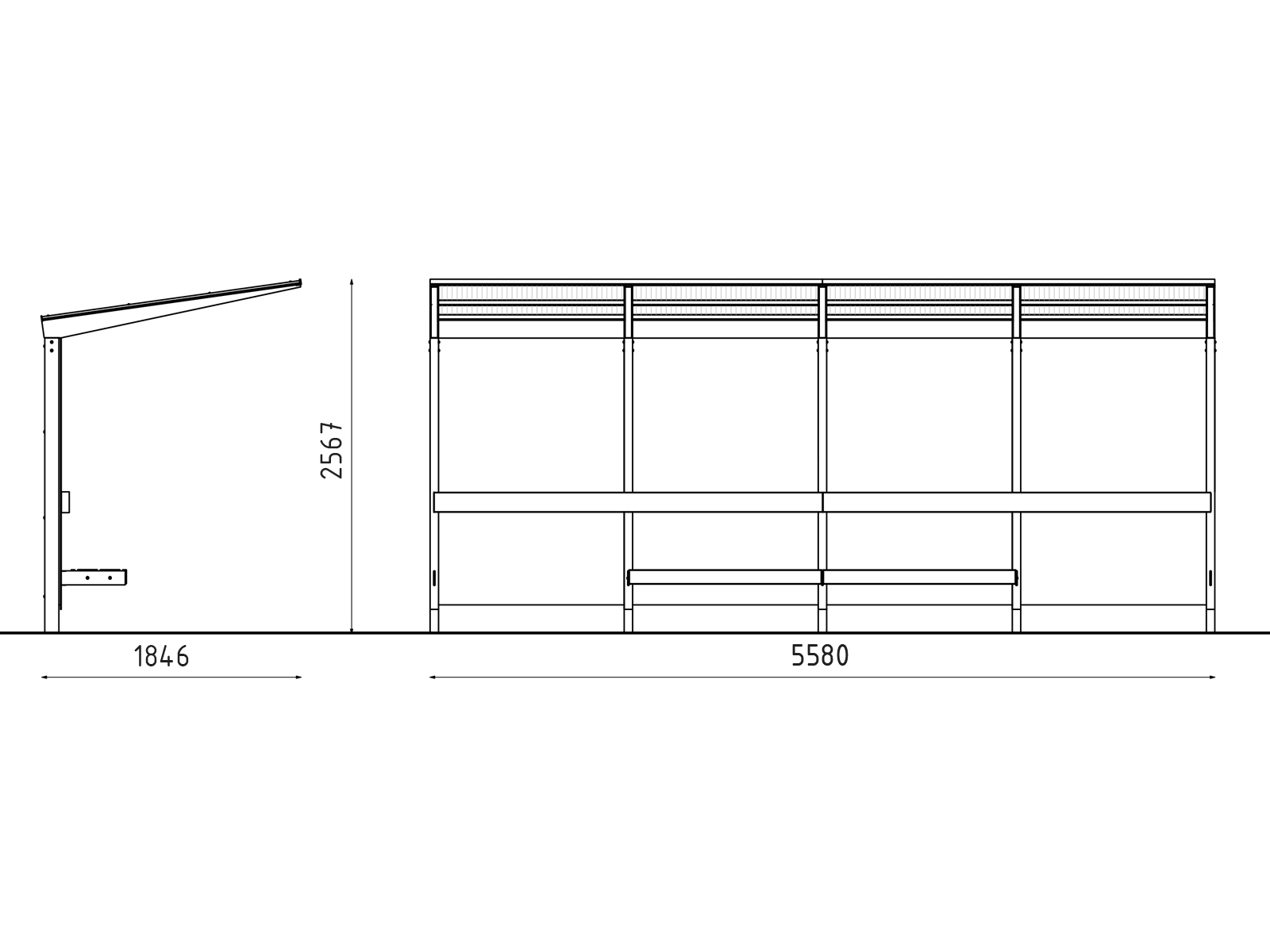 2 moduly / bez bočnic / dřevěná záda / polykarbonátová střecha