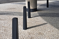 The architectural concrete cast into the silicone mold – class C30/37 available in the natural concrete shade. The metal parts are galvanized. At its bottom part, the barrier pillar is extended into a flange with four holes for anchoring to the base below the ground level.