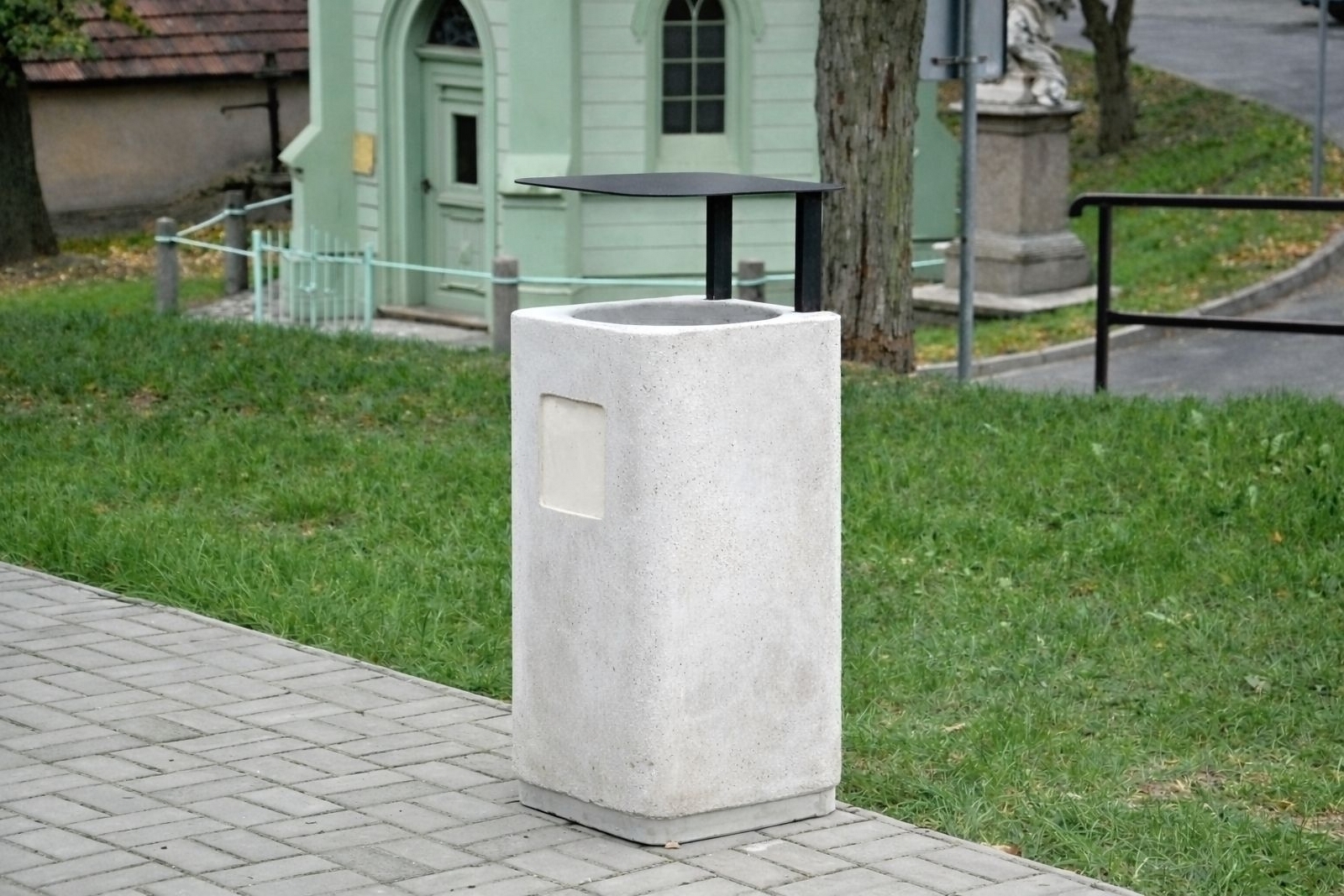 The BEKO concrete litter bin is a durable and aesthetically pleasing solution for public spaces. It is suitable for parks – for example, in the U Boříka Park in Ostrava – as well as for squares, such as Masaryk Square in Letovice.
