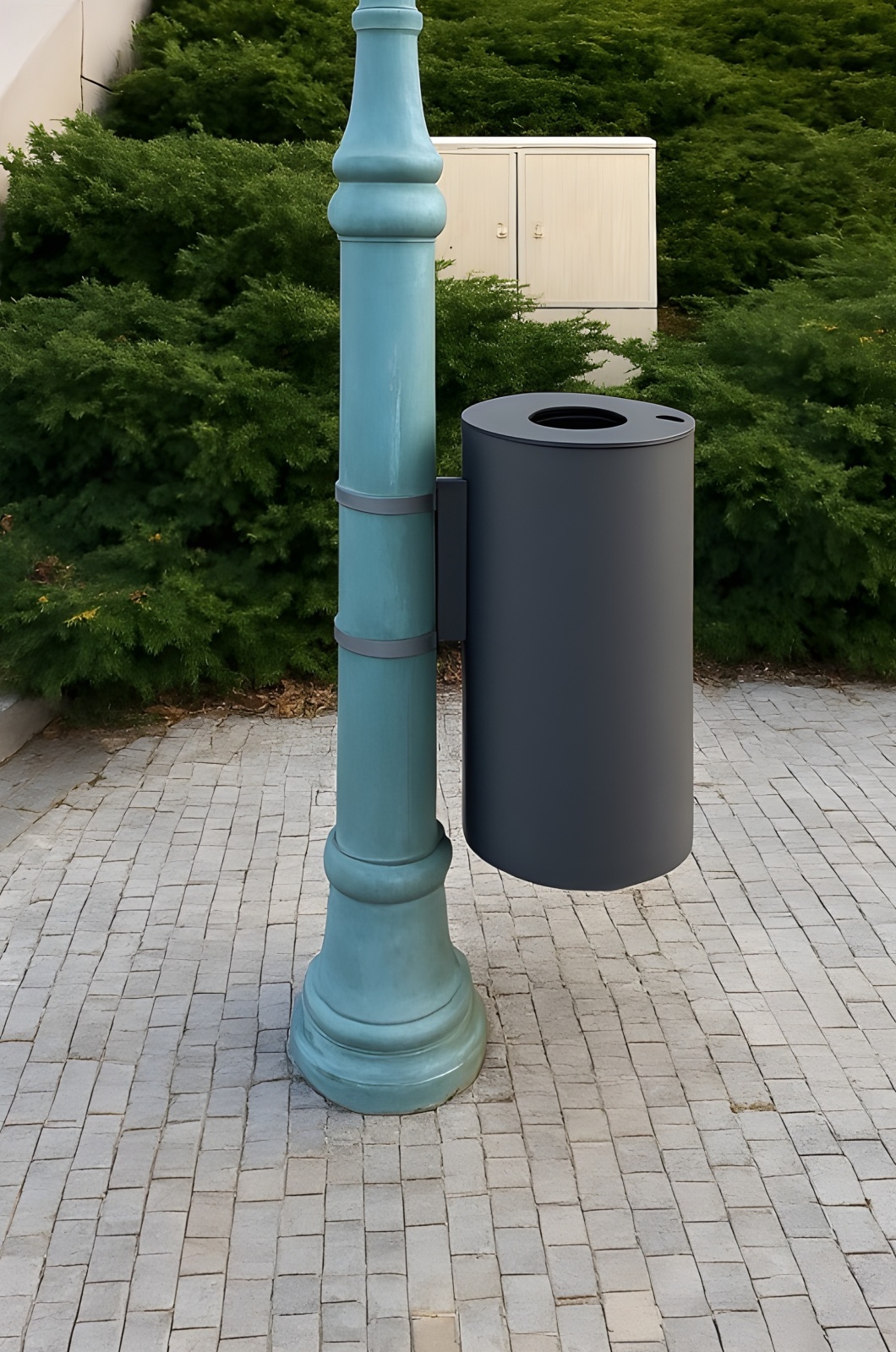 litter bin / mount on a streetlight pole / with cigarette extinguisher