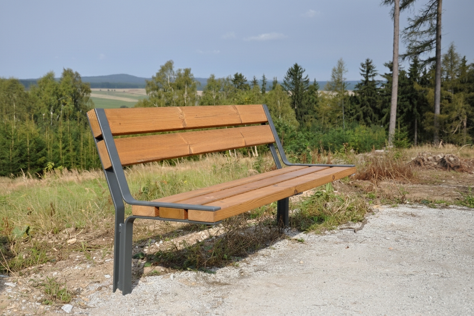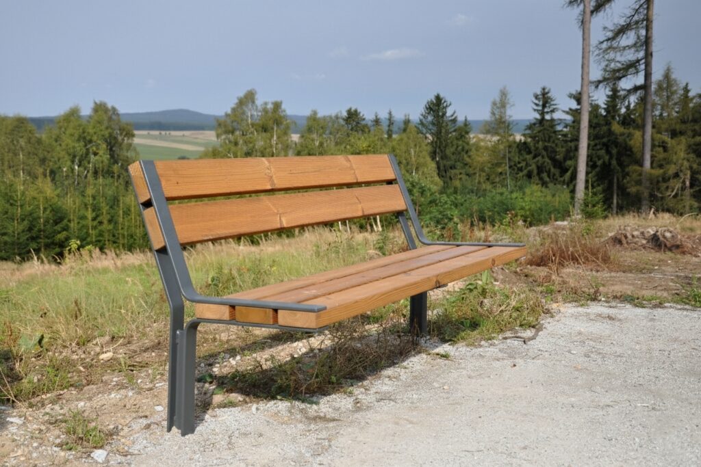 Newly redesigned outdoor bench, particularly suitable for locations with an increased risk of vandalism. The durability and strength of this bench are ensured by its steel structure made from laser-cut steel plates with a thickness of 8 mm, firmly anchored to substructures below ground level. Thanks to its structural design and choice of materials, it is also ideal for remote resting areas, such as along cycle paths, in problematic housing estates, and anywhere rough or unconventional use of the product can be expected. Due to its minimised side profile, the benches are also suitable for flood-prone areas.