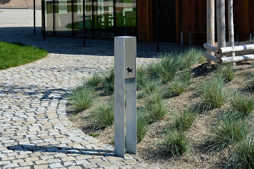 Sprednja plošča držala vrečk za pasje iztrebke RAILA DOG je izdelana iz nerjavnega jekla.