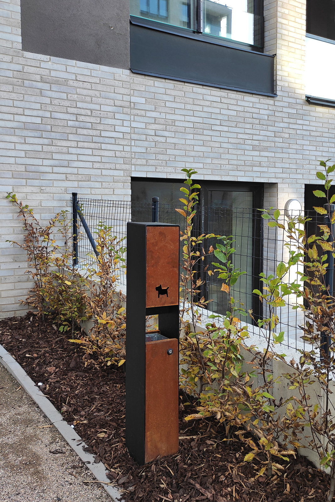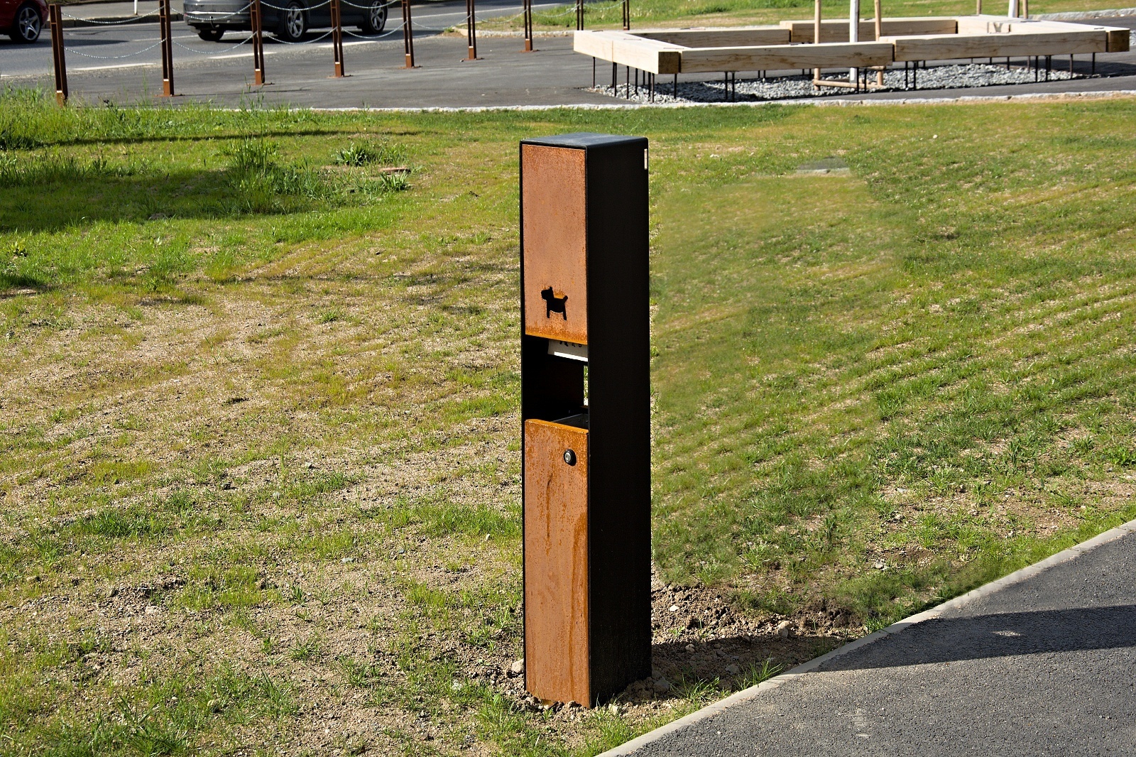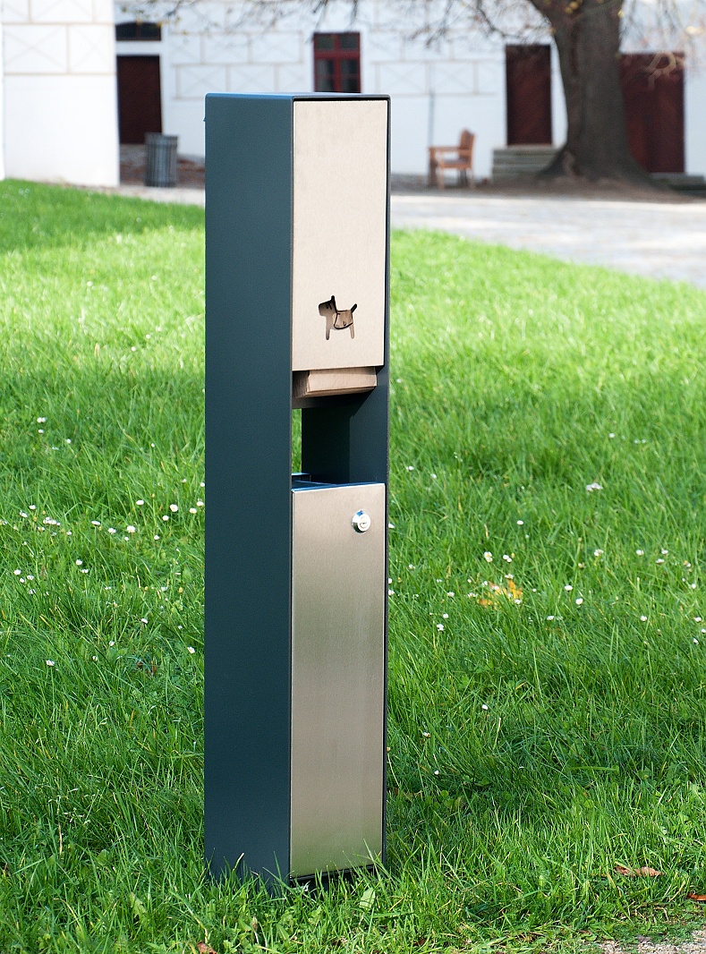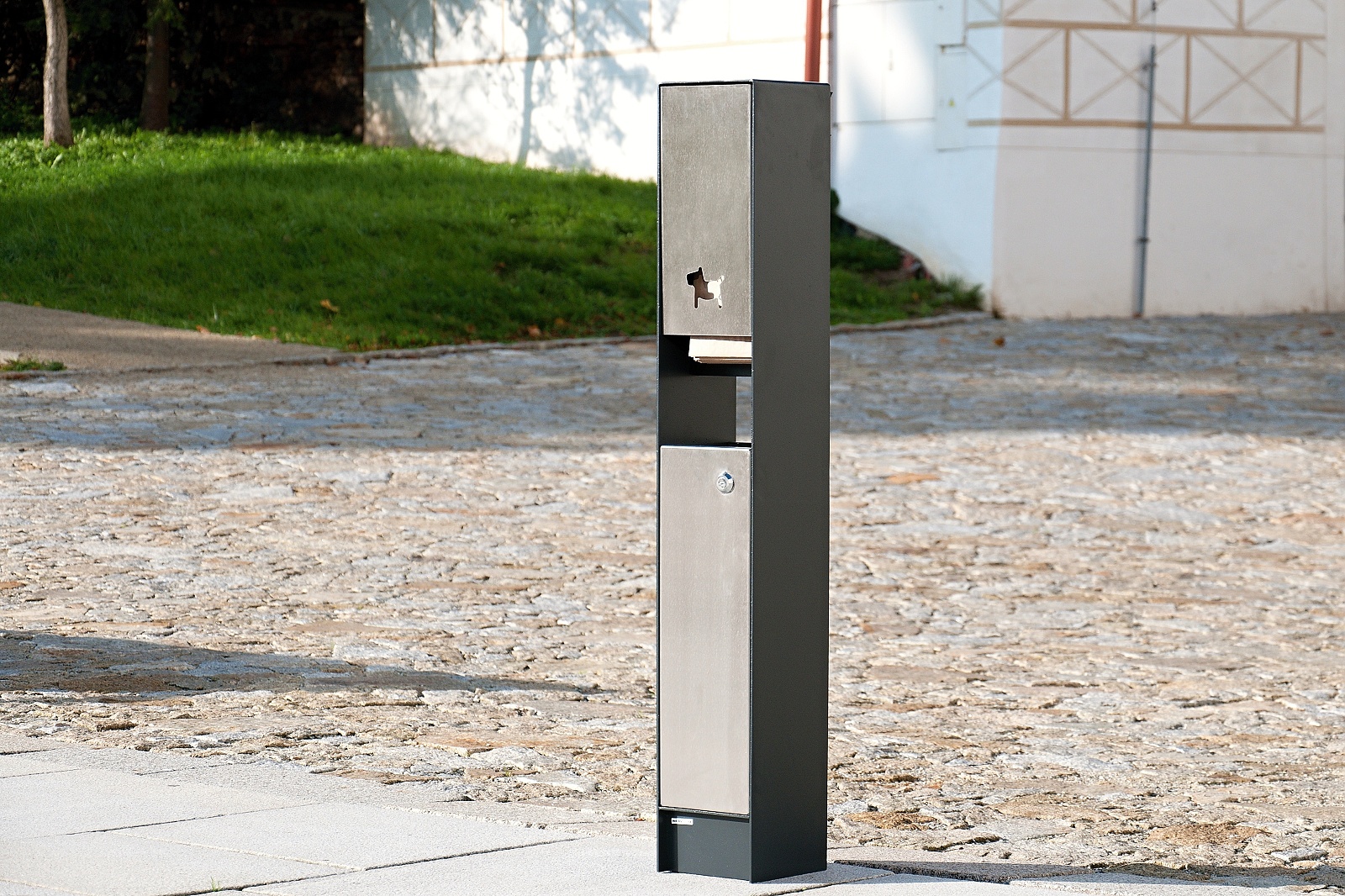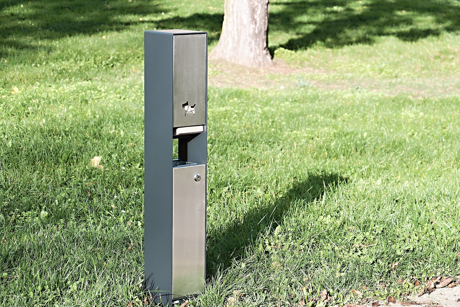 Koš za vrečke s pasjimi iztrebki v obliki RAILA koša za odpadke in pepelnika. Namenjena je za FEDOG papirne vrečke, opremljene z majhno lopatko. Z izbiro variante SRD2 dobavimo poleg galvanizirane odstranljive posode za uporabljene vrečke s prostornino 15 l tudi škatlo za papirne vrečke.
