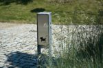 Sprednja plošča držala vrečk za pasje iztrebke RAILA DOG je izdelana iz nerjavnega jekla.