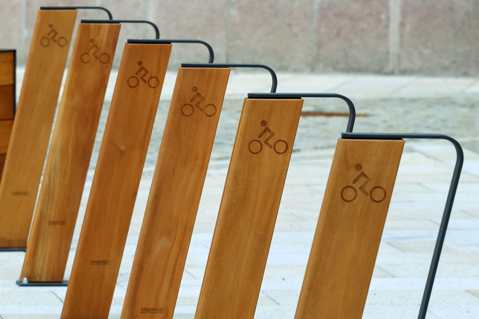 Stojalo za kolesa VELONE omogoča parkiranje vseh tipov koles z obeh strani. Lesene letve ščitijo barvo parkiranih koles. Uporabljeni leseni elementi mehčajo izgled stojala in omogočajo postavitev stojala tudi tam, kjer bi drugi proizvodi preveč izstopali, npr. poleg zgodovinskih stavb.
